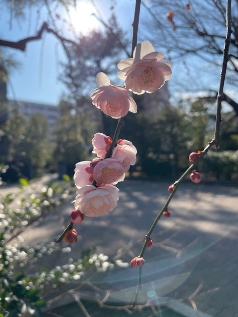 近所の祥雲寺さまの梅が、いつの間にか満開になっていました。