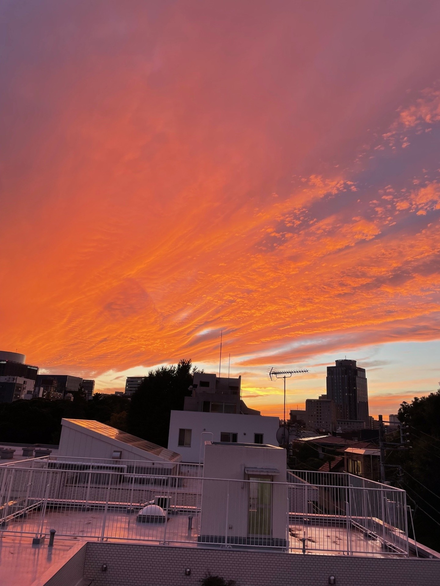 11月は帰宅すると真っ暗な日が続きますが、月初めにドラマチックな夕空に出会い、マンションの階段から撮影しました。